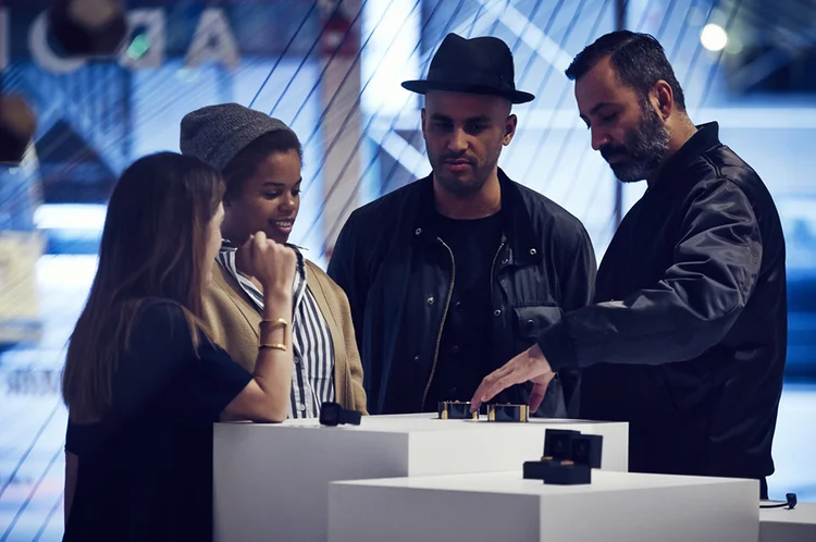 The MUZSE campaign — a partnership between Intel and Milk Studios — used the Adorned exhibition to position Intel at the intersection of technology and fashion at a moment when wearables were just beginning to enter the cultural conversation. The gallery itself was designed as a wearable: an integrated space where plaster casts, interactive elements, and string art patterns connected the installations across the room.